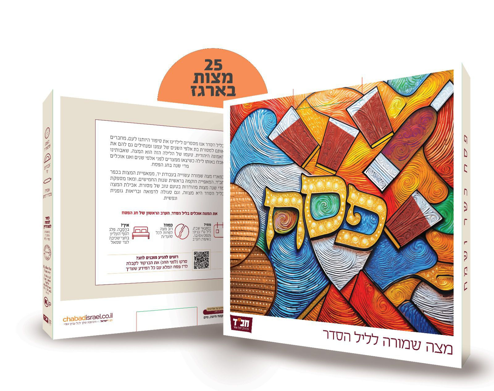 מצה גדולה בקופסא גודל מצה: 24 ס"מ גודל קופסא 28X28 ס"מ נאפה במאפיית 'מצות חב"ד' - סניף אוקראינה