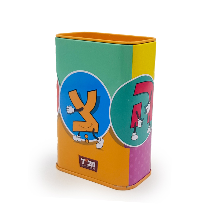 קופת צדקה איכותית מפח בעיצוב ססגוני לילדים. גודל: 7x10x4 ס"מ